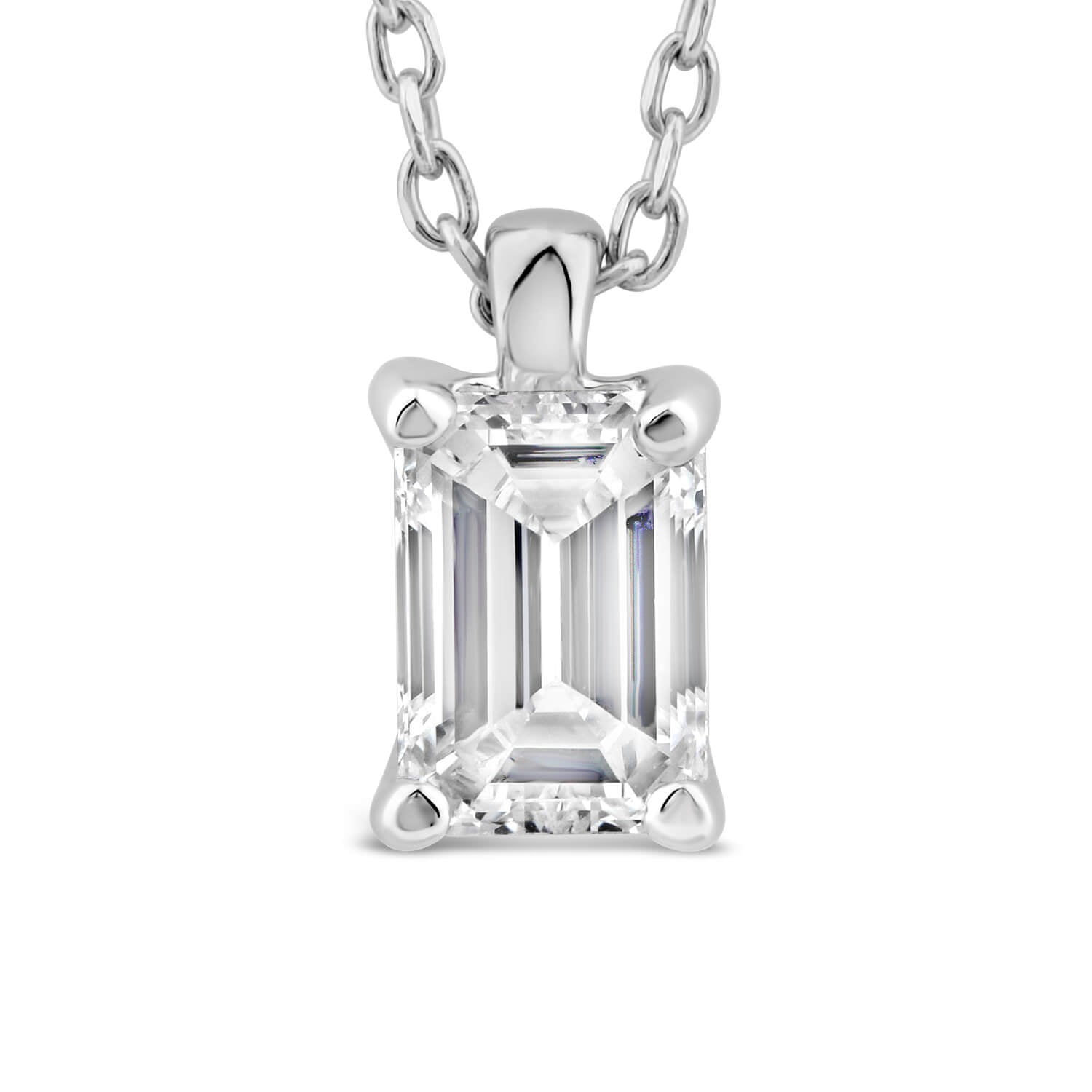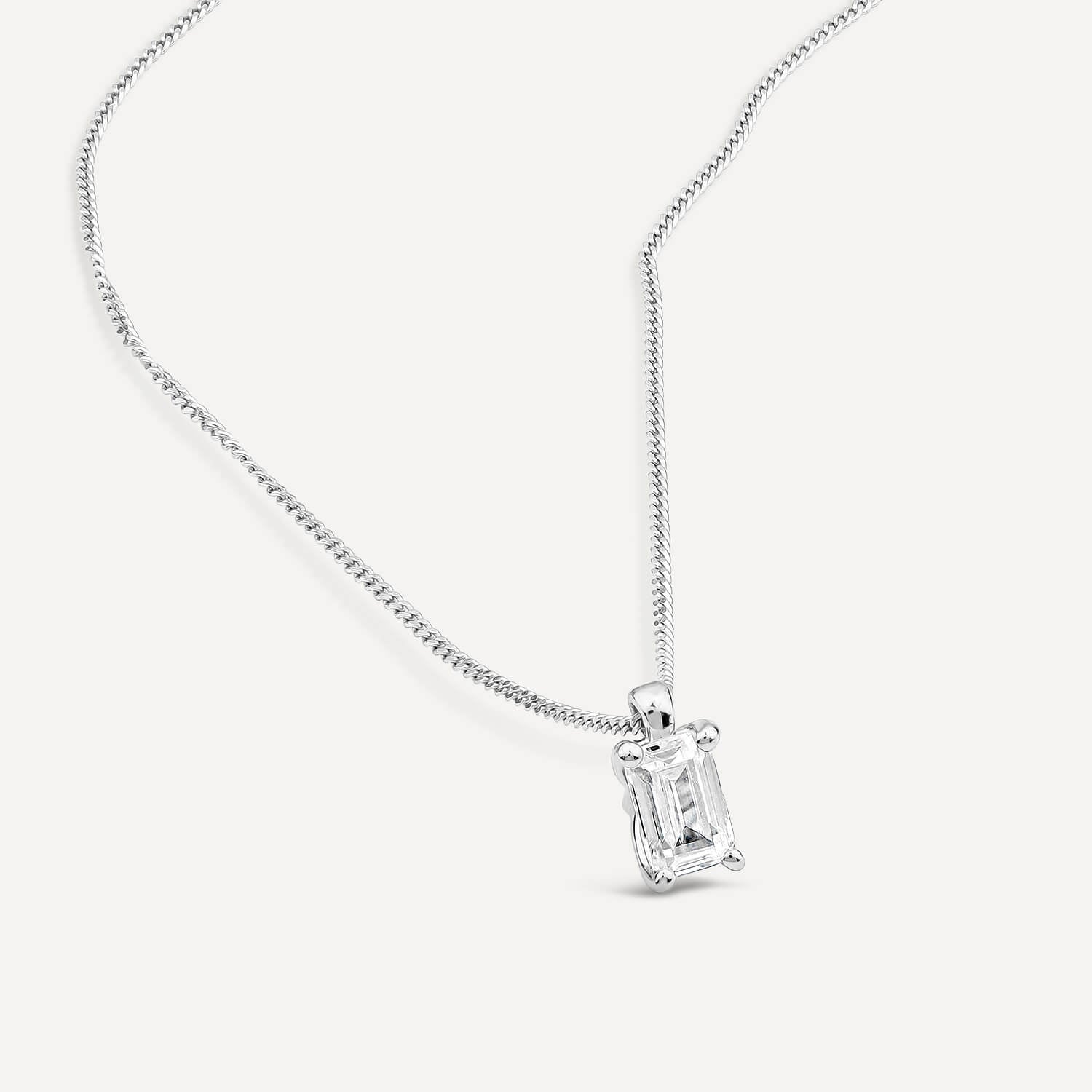 Born 18ct White Gold Lab Grown 0.50ct Emerald Cut Diamond Pendant