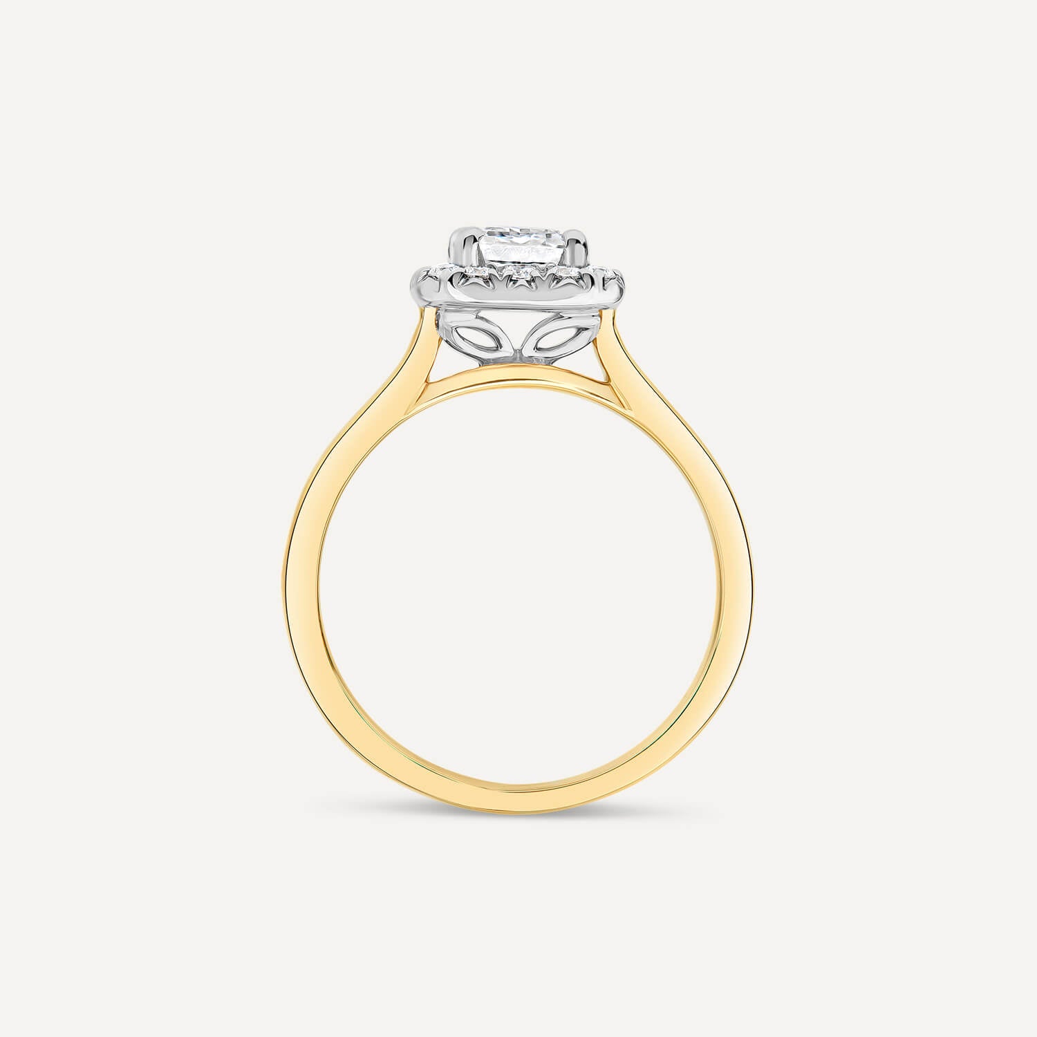 Born 18ct Yellow Gold 1.20ct Lab Grown Emerald Cut Halo Diamond Ring