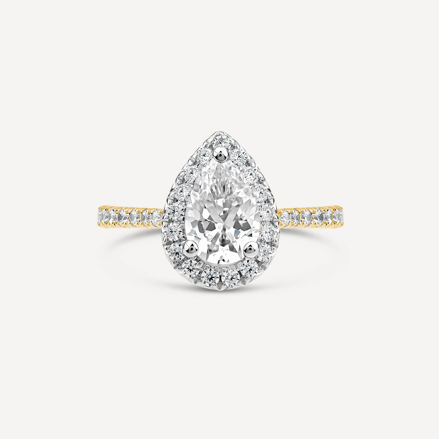This beautiful ring features a total diamond weight of 1.61 carat pear shaped halo diamond, on a yellow gold band which is embellished with smaller stones.The modern pear stone offers a contemporary take on the classic diamond.This beautiful diamond features a minimum G colour and a minimum clarity of VS2 and is certified by the IGI.Created with exceptional craftmanship and cutting-edge technology, born™ is a curated collection of lab-grown diamond jewellery.Each diamond is grown in a lab before being meticulously cut and polished by skilled artisans before being set. Please note this ring can be resized free of charge post purchase by +1/-1 of the original size.The re-sizing process may take up to 2 weeks after delivery.