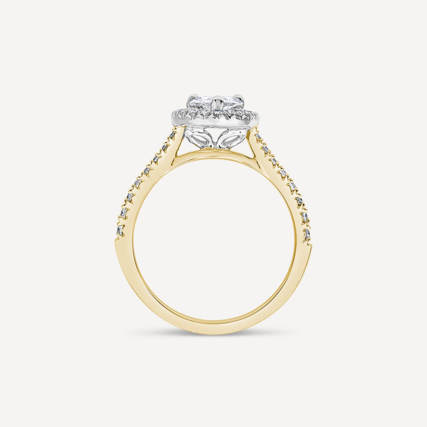 Born 18ct Yellow Gold 1.61ct Lab Grown Pear Halo & Diamond Sides Ring