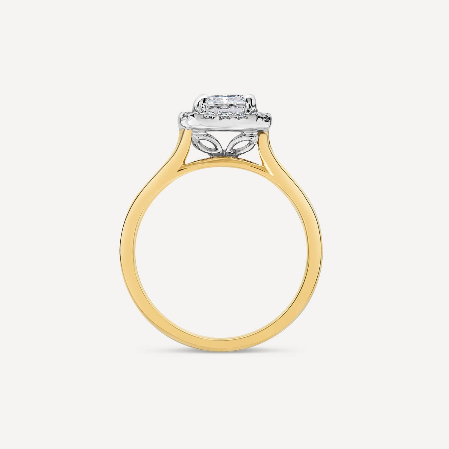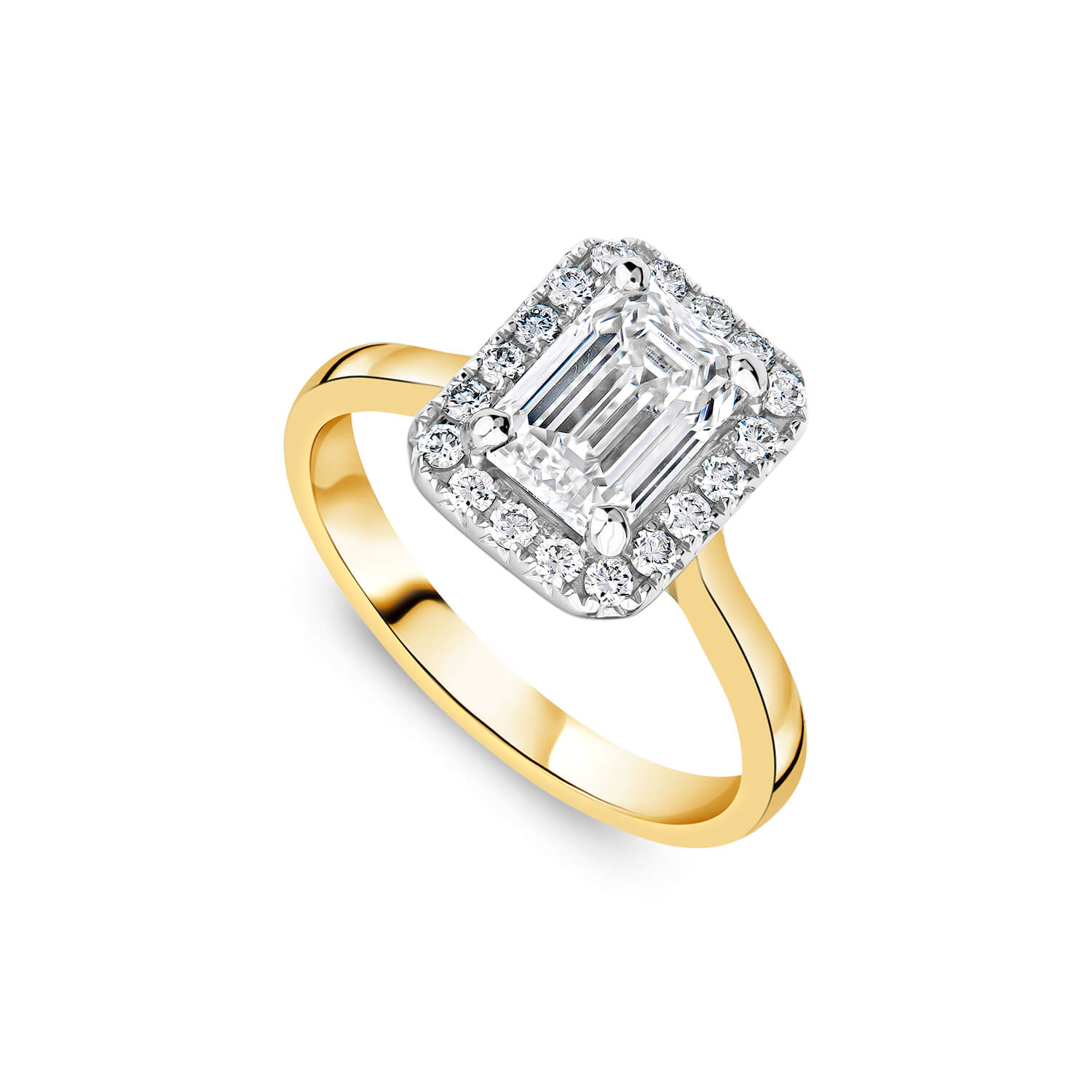 Born 18ct Yellow Gold 1.72ct Lab Grown Emerald Cut Halo Diamond Ring