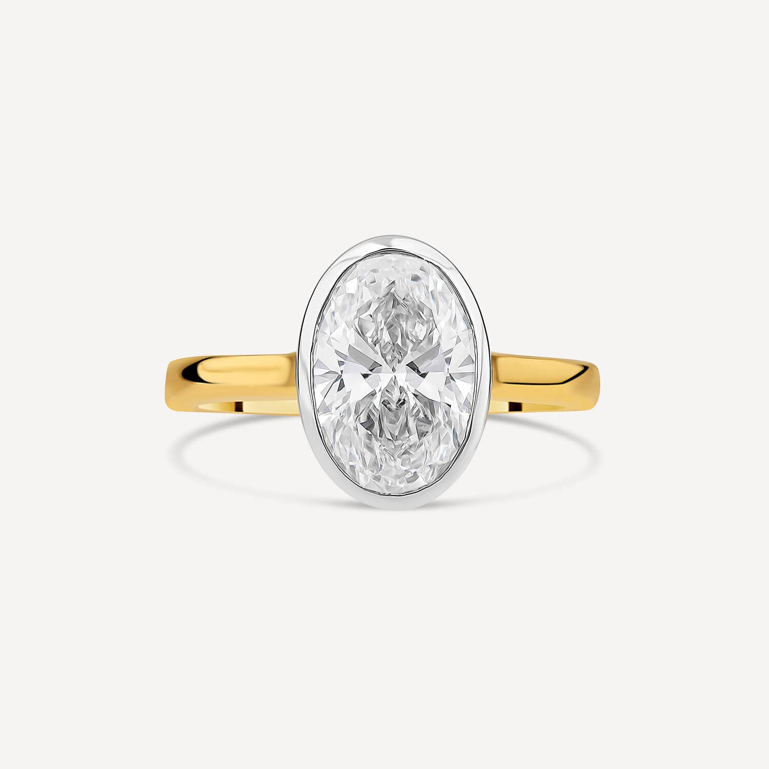 Born 18ct Yellow Gold 2.00ct Oval Lab Grown Diamond Bezel Set Solitaire Ring