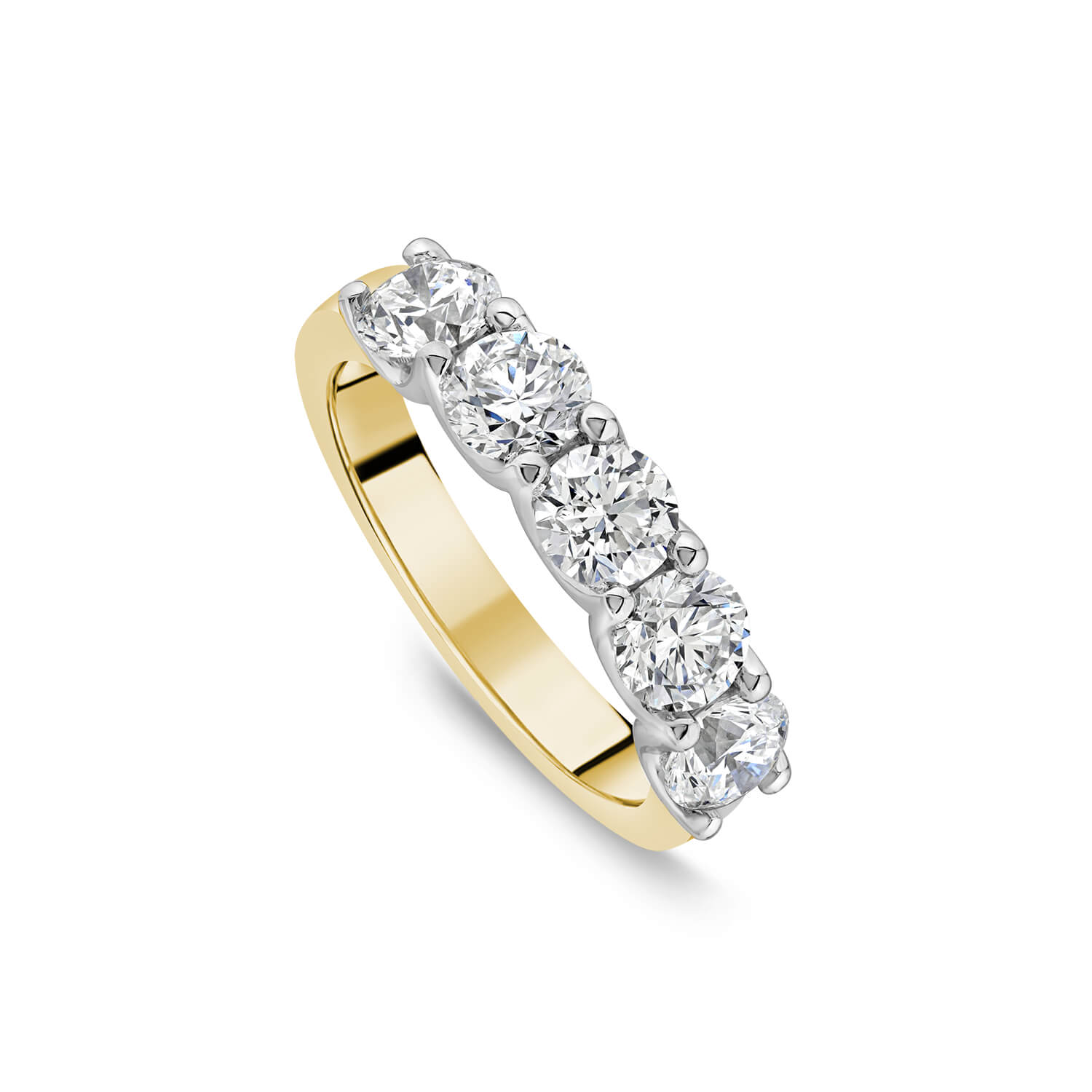 Born 18ct Yellow Gold 2ct Lab Grown 5 Stone Diamond Half Eternity Ring