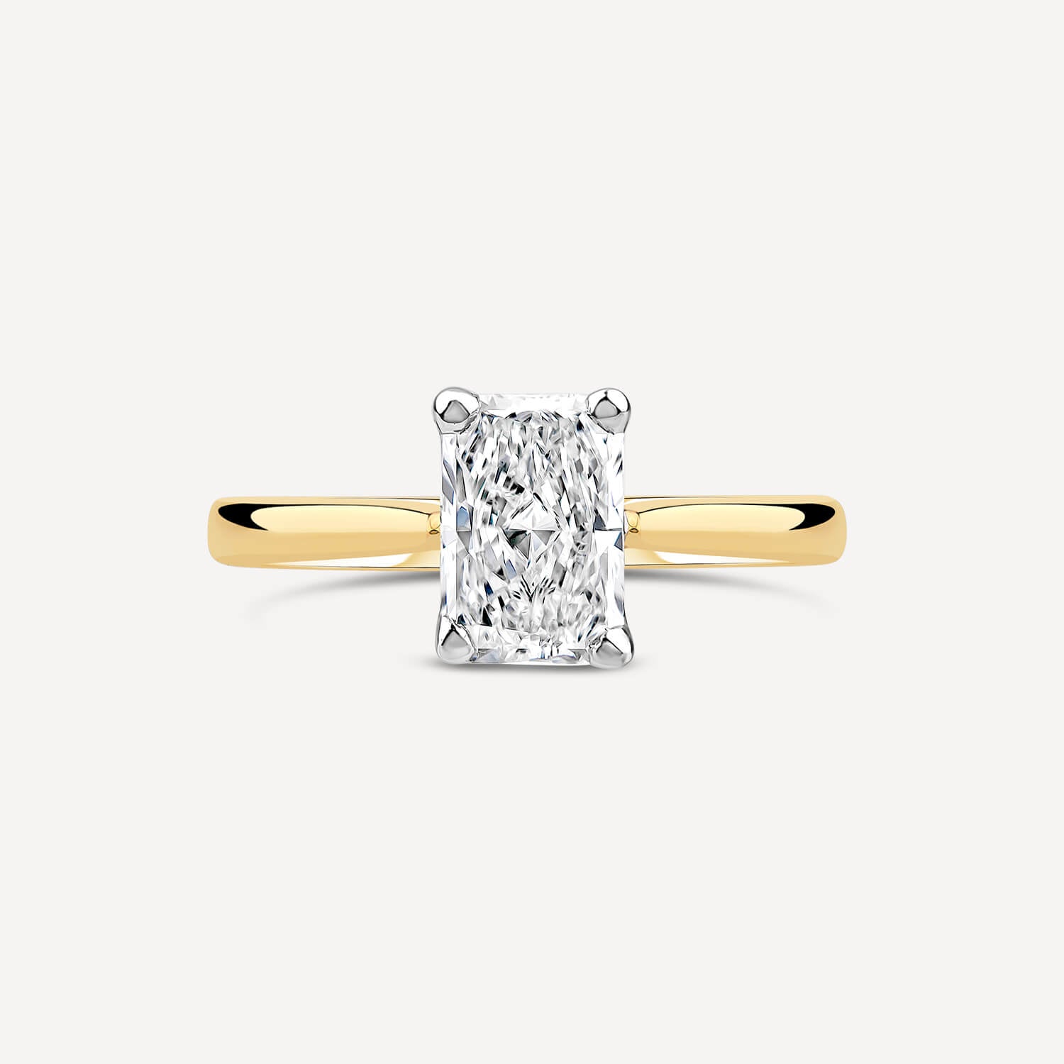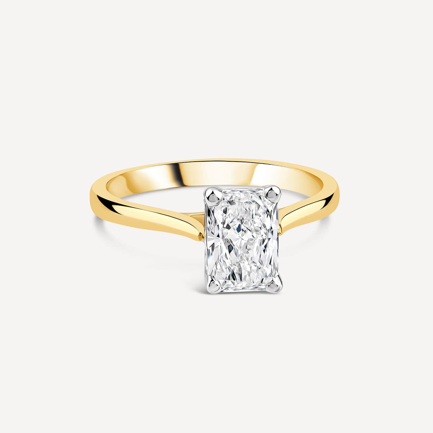 Born 18ct Yellow Gold Lab Grown 1.50ct Diamond Radiant Cut Solitaire Ring