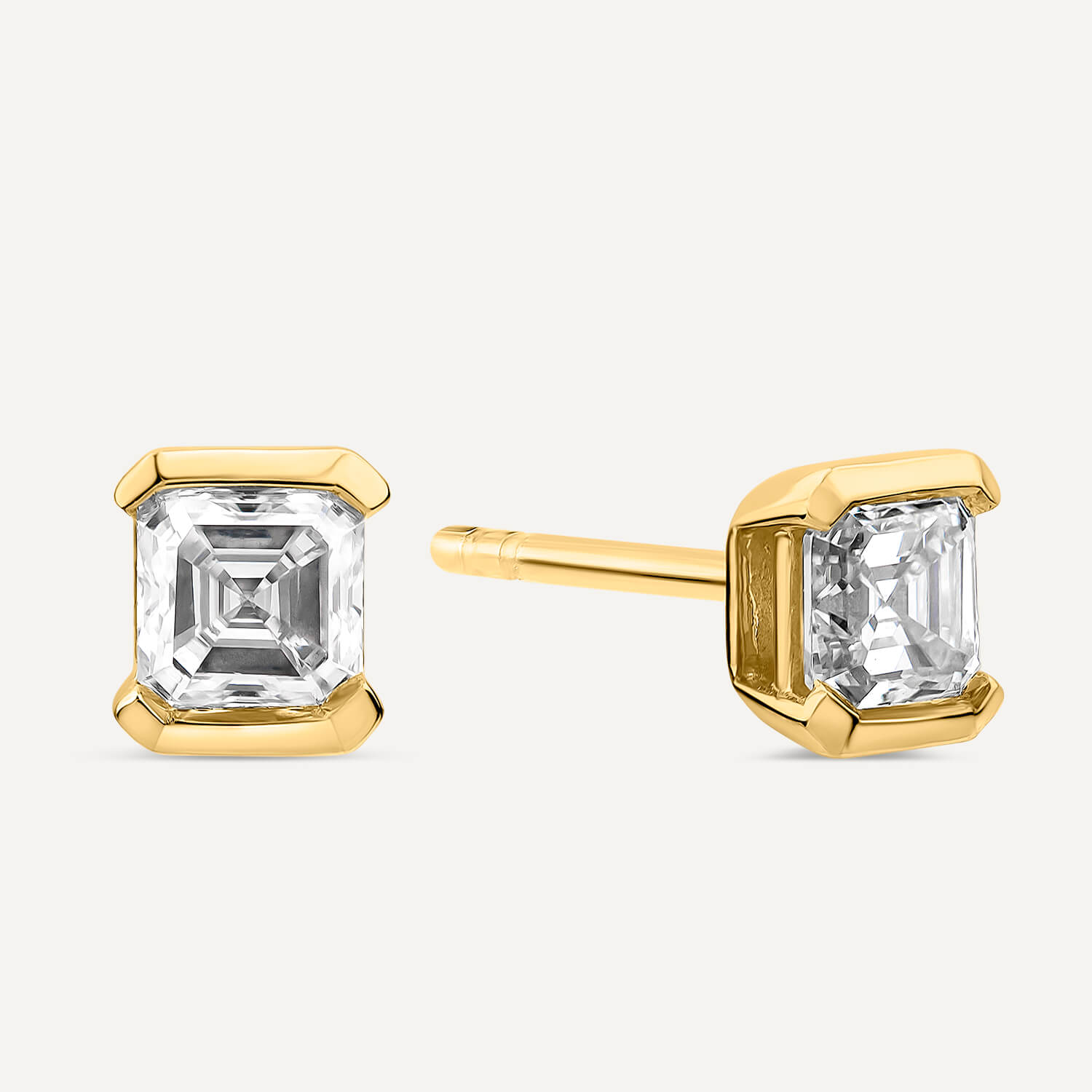 Born 1ct Classic 9ct Yellow Gold Lab Grown 1.00ct Asscher Cut Diamond Stud Earrings