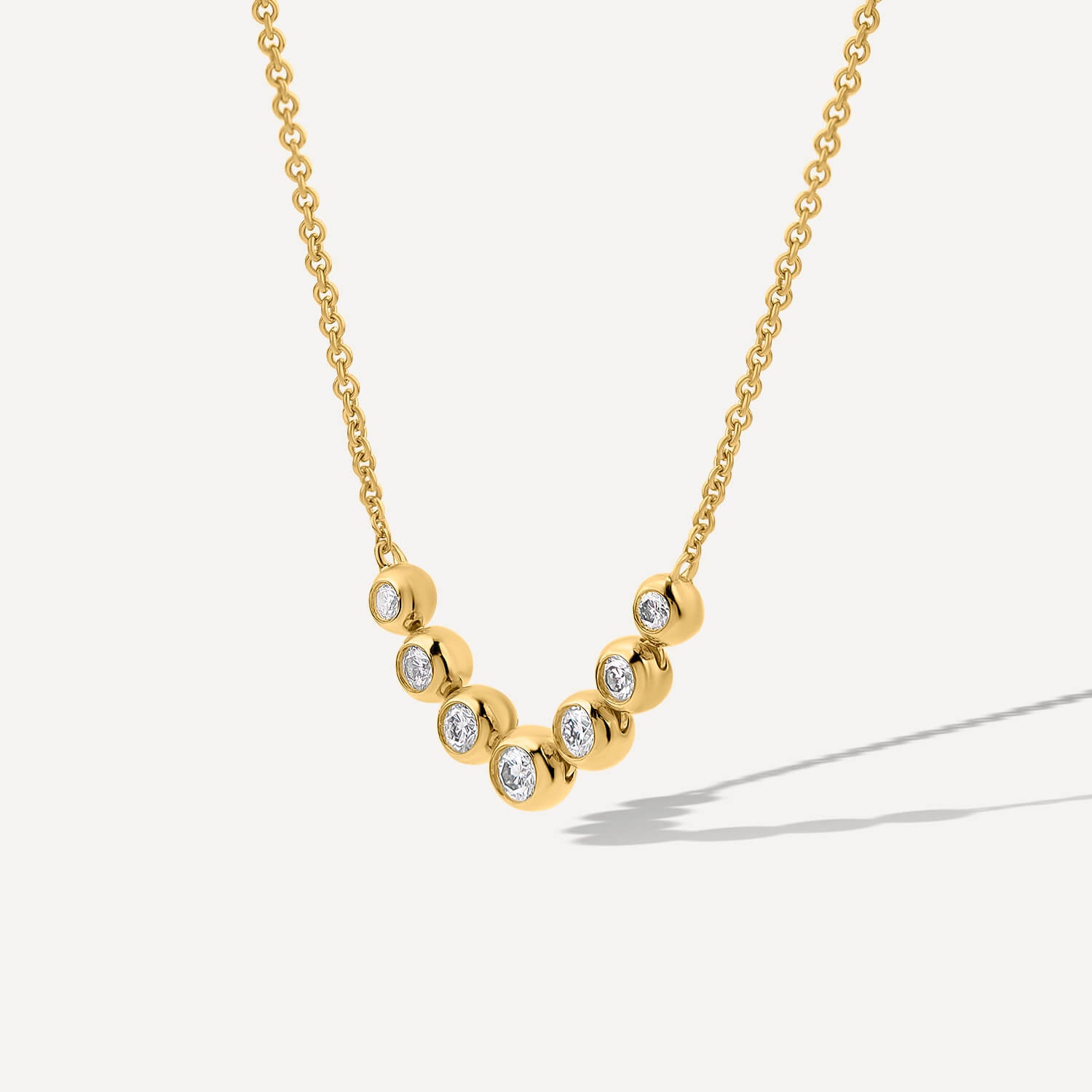 From born™ Granules, this necklet features a 0.20ct round lab grown diamond on a fine textured 9ct yellow gold chain. Understated but distinctive, it layers easily and wears well on its own. Light, polished, and easy to style.