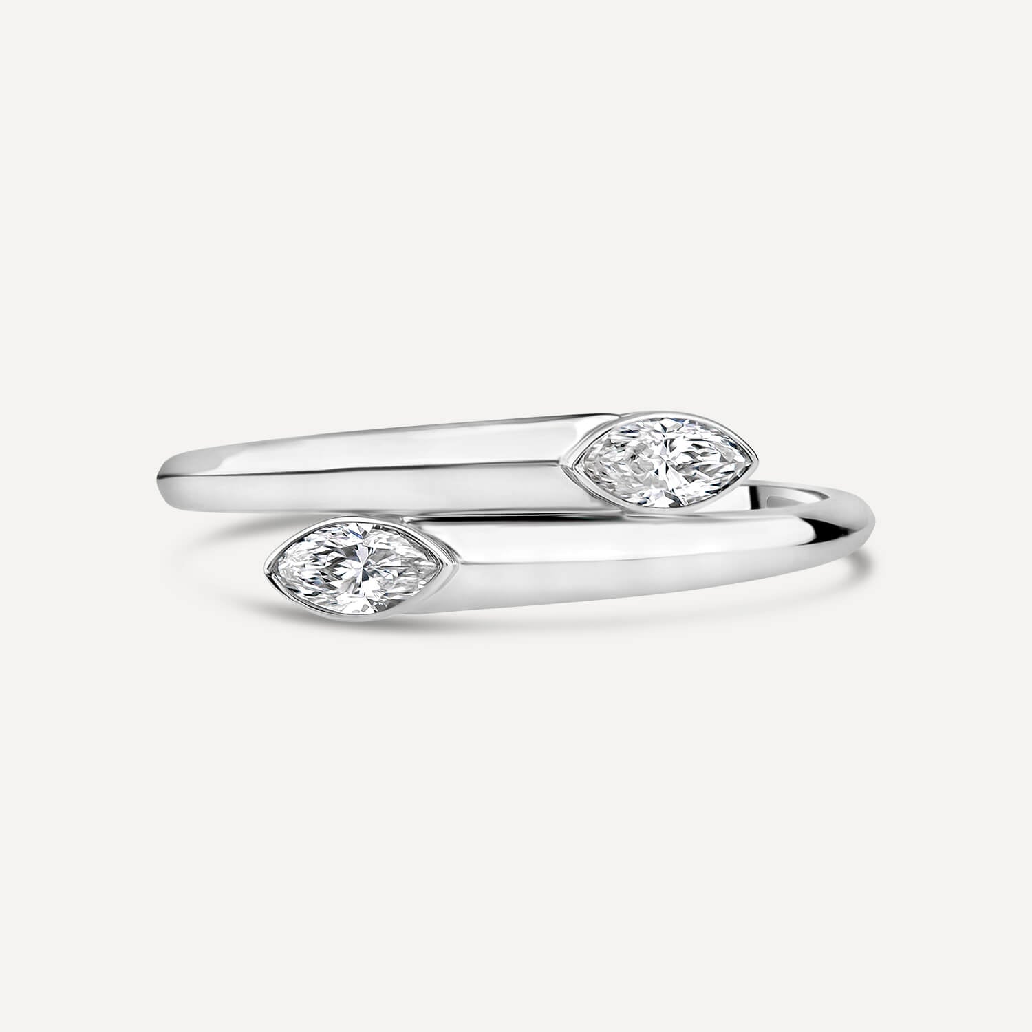 This born™ Kissed with Diamonds ring is crafted in 9ct white gold and set with two marquise lab grown diamonds totalling 0.20ct. The twist-shaped design wraps the finger with a soft, flowing silhouette. Comfortable and distinctive with subtle sparkle.