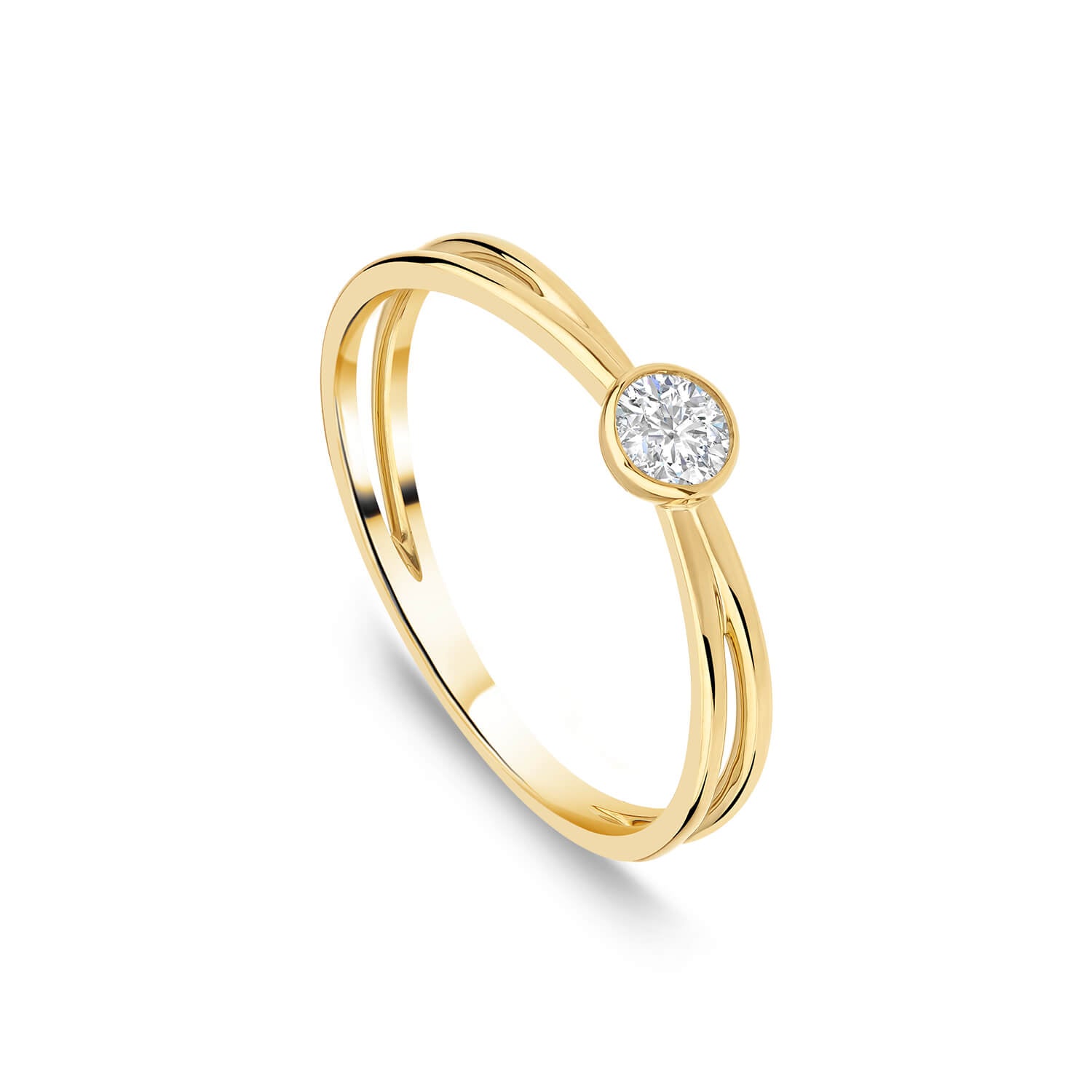 Born Kissed with Diamonds 9ct Yellow Gold Lab 0.15ct Round Diamond Open Split Shoulders Ring