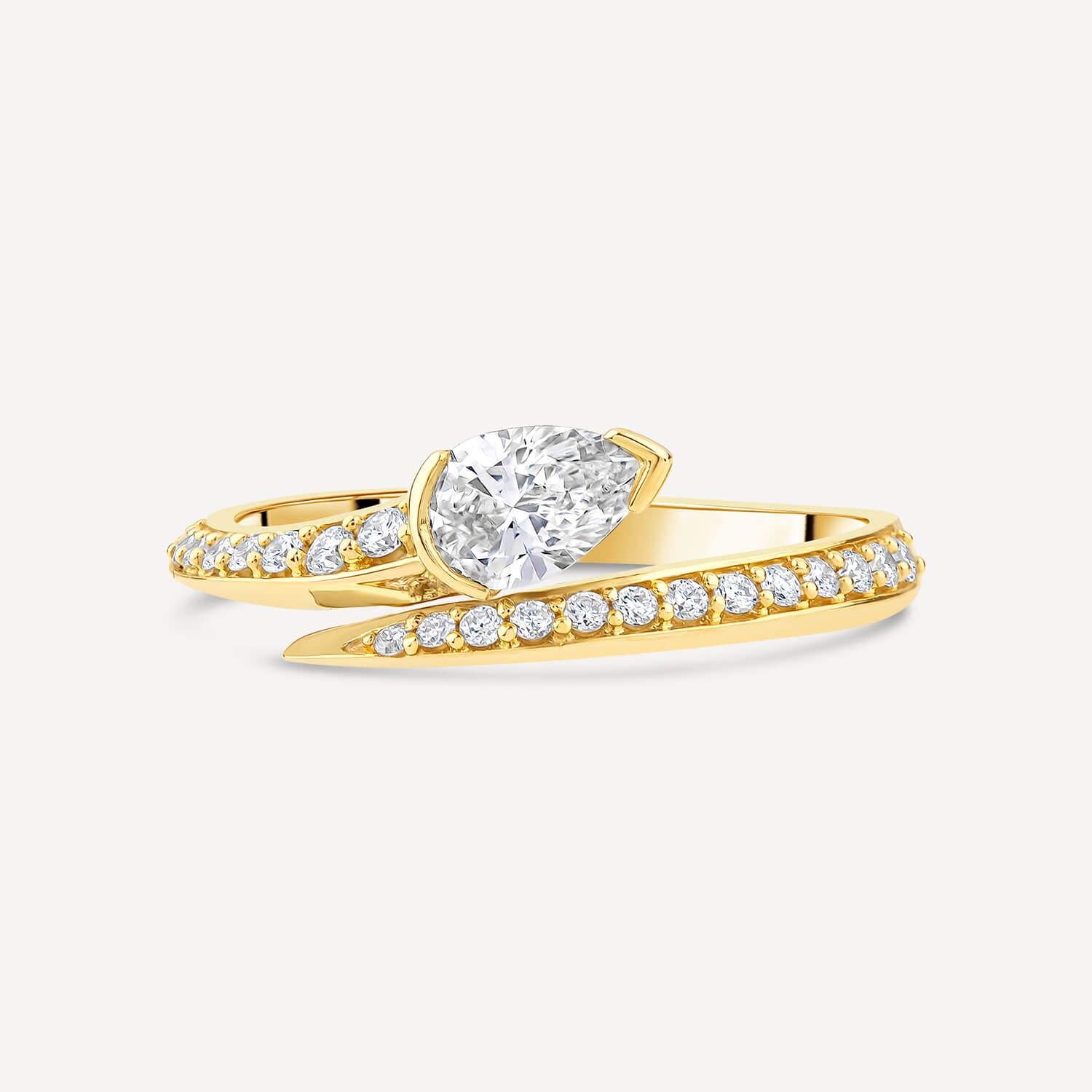 Born Kissed with Diamonds 9ct Yellow Gold Lab Grown 0.58ct Pear Diamond Twist Shaped Ring