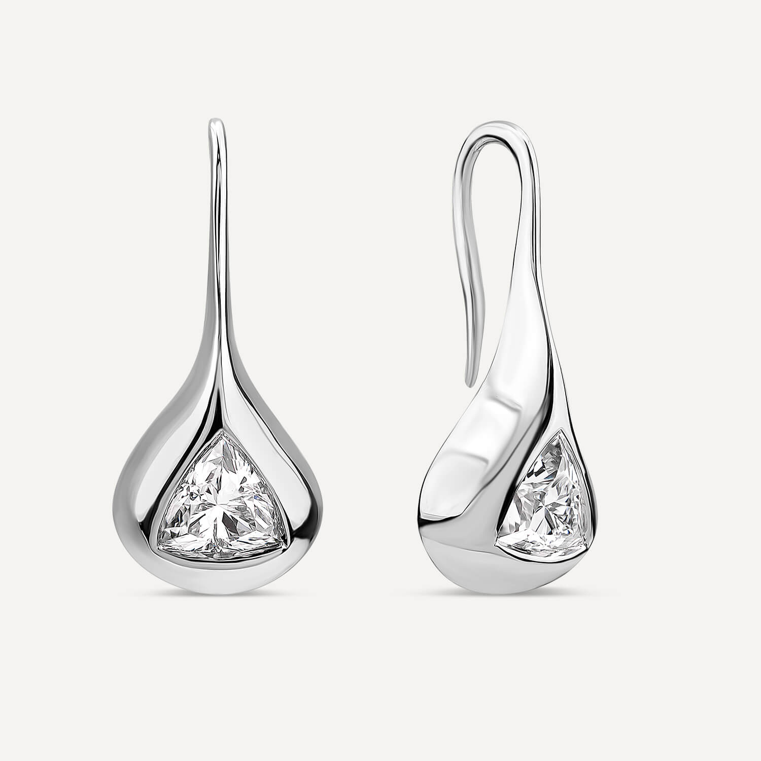 Born Orbit 9ct White Gold Lab Grown 0.80ct Trillion Cut Diamond Drop Earrings