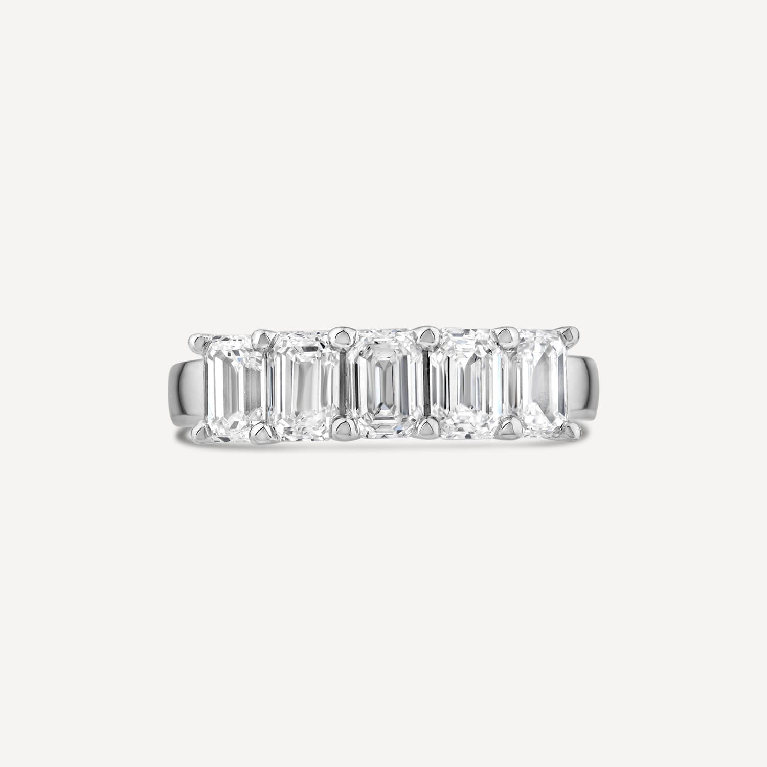 Born Platinum 1.85ct Lab Grown 5 Stone Emerald Cut Half Eternity Diamond Ring