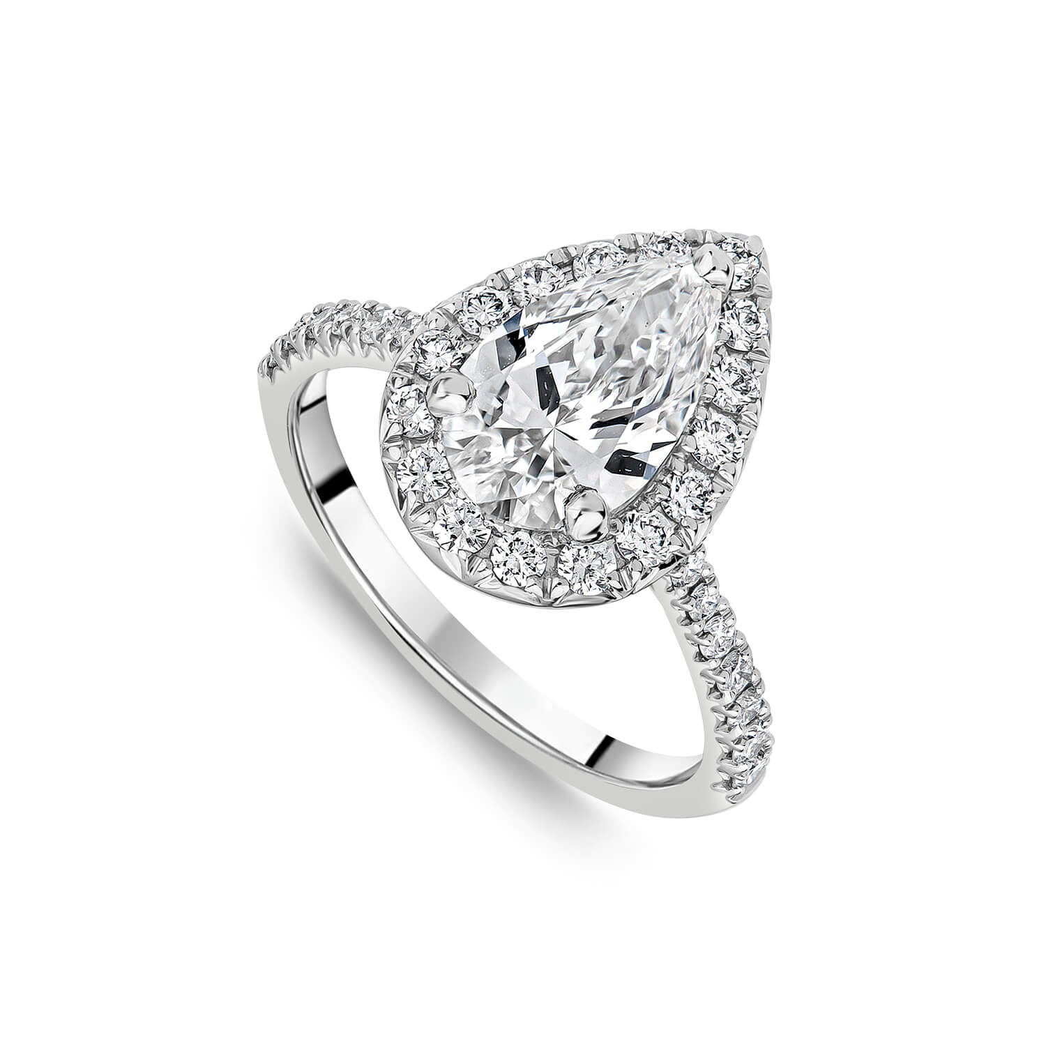 Born Platinum 2.13ct Pear Halo & Diamond Sides Ring