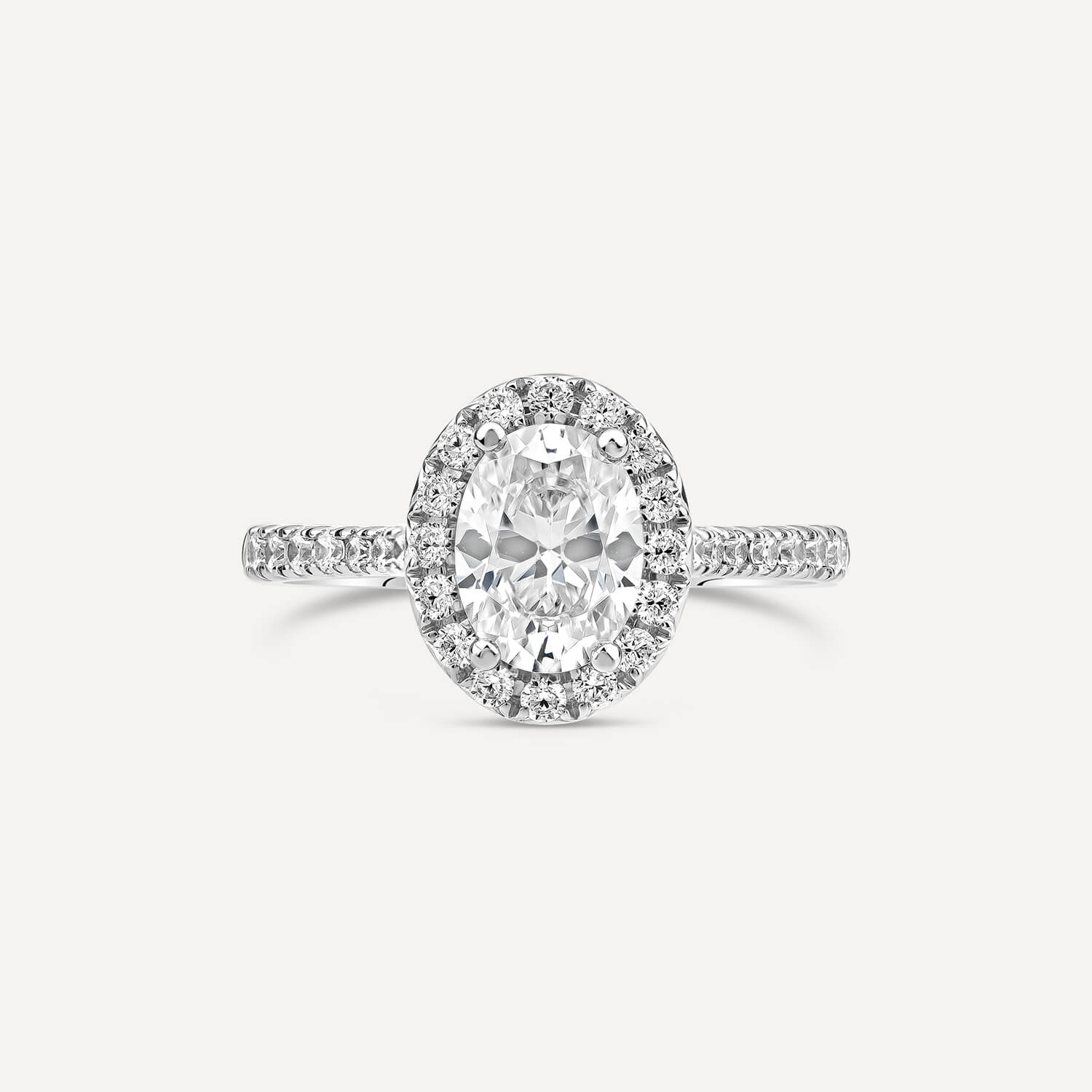 Born Platinum Lab Grown 1.40ct Oval Halo & Diamond Sides Ring