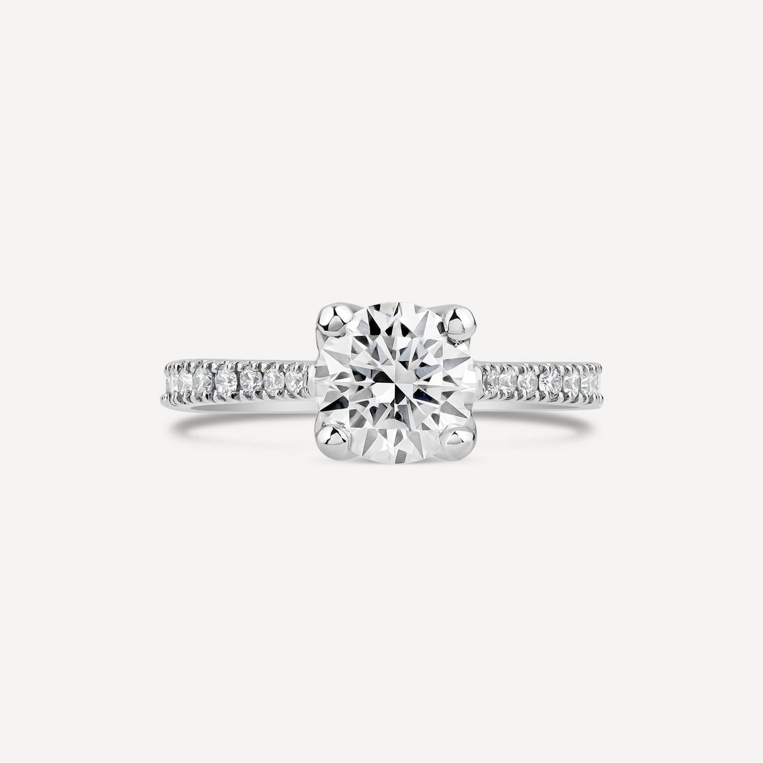 This beautiful ring features a 1.4 carat round diamond, on a platinum band which is embellished with smaller stones. The modern round stone offers a contemporary take on the classic diamond. This beautiful diamond features a minimum G colour and a minimum clarity of VS2 and is certified by the IGI. Created with exceptional craftmanship and cutting-edge technology, born™ is a curated collection of lab-grown diamond jewellery. Each diamond is grown in a lab before being meticulously cut and polished by skilled artisans before being set.Please note this ring can be resized free of charge post purchase by +2/-2 of the original size.The re-sizing process may take up to 2 weeks after delivery.
