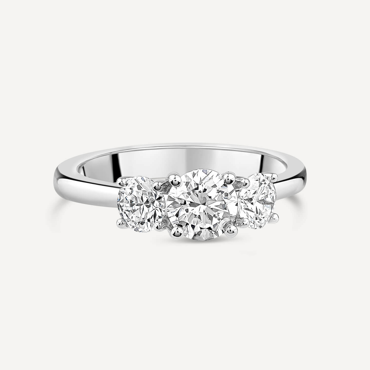 Born Platinum Lab Grown 1 carat 3 Stone Round Brilliant Diamond Ring