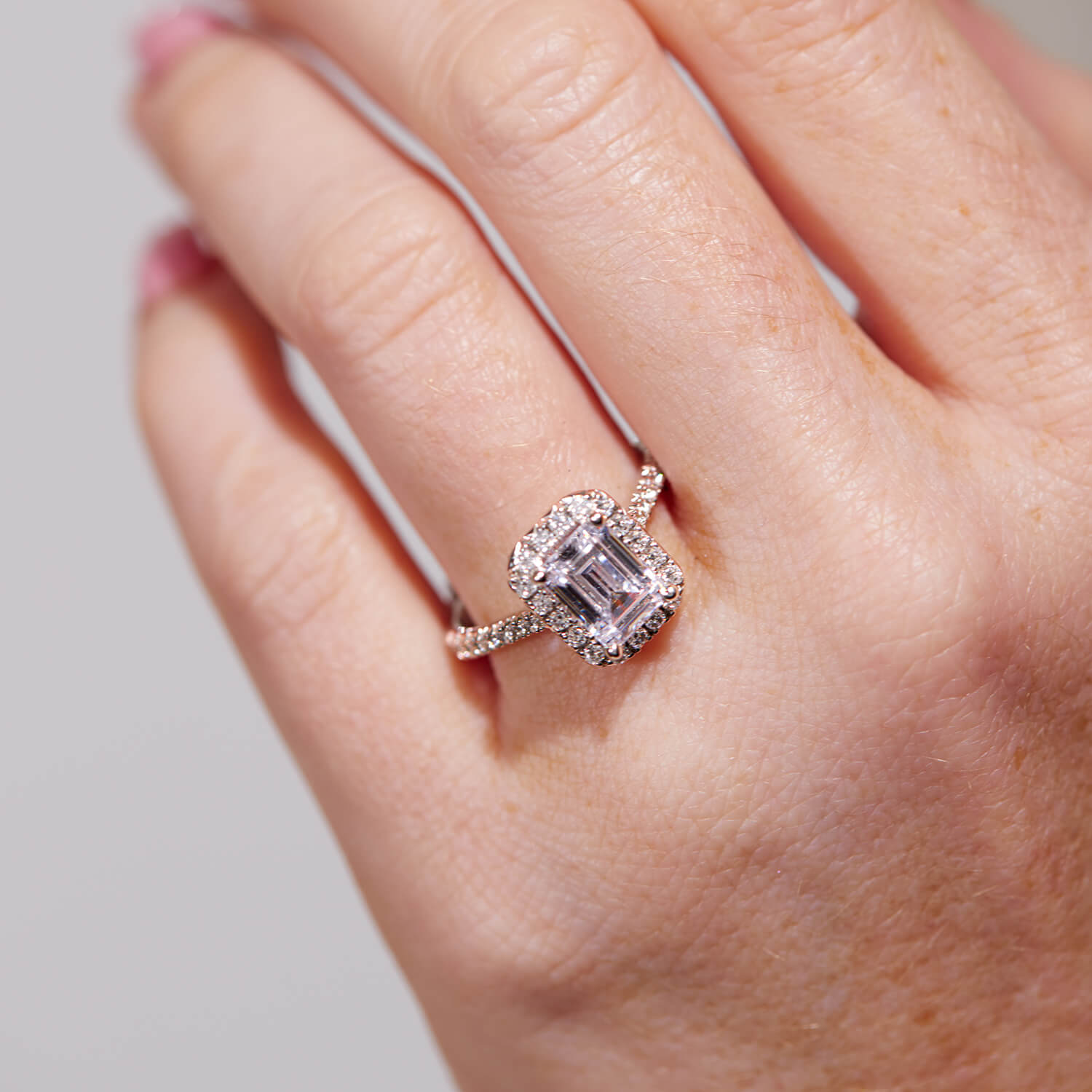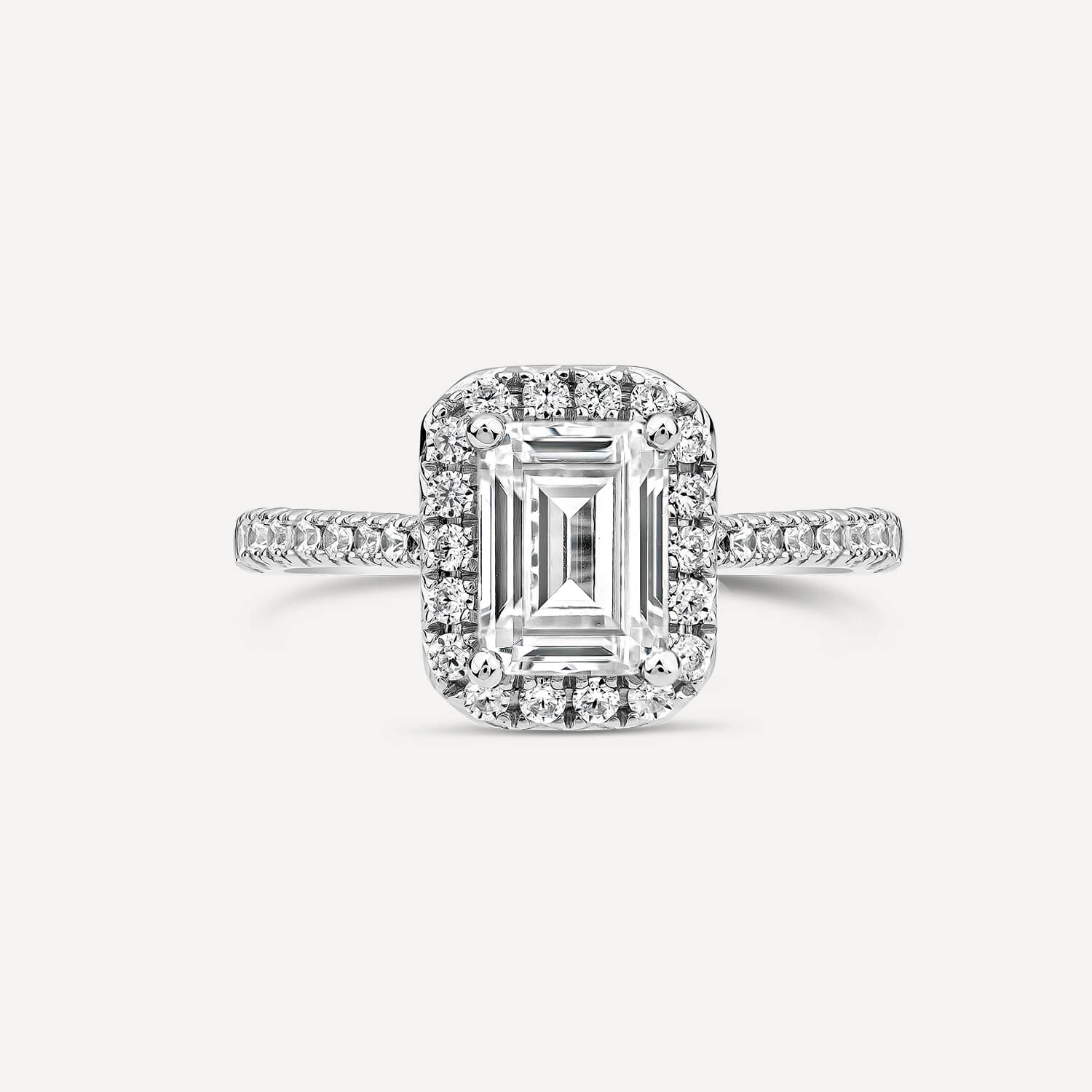 This beautiful ring features a 2.13 carat emerald diamond, on a platinum band which is embellished with smaller stones. The modern emerald stone offers a contemporary take on the classic diamond and features a minimum G colour and a minimum clarity of VS1 and is certified by the IGI. Created with exceptional craftmanship and cutting-edge technology, born™ is a curated collection of lab-grown diamond jewellery. Each diamond is grown in a lab before being meticulously cut and polished by skilled artisans before being set.